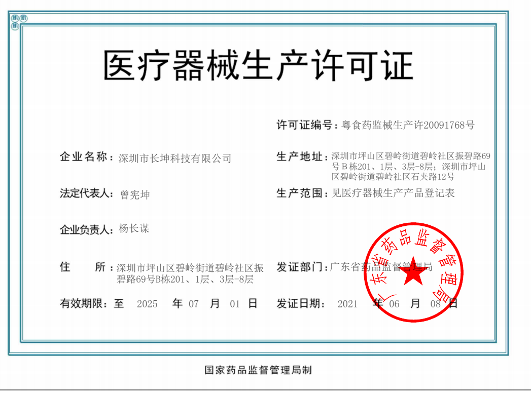 中文版|ENGLISH 服務(wù)熱線:0755-29100487 歡迎來(lái)到深圳市長(zhǎng)坤科技有限公司官網(wǎng)!      粵深食藥監(jiān)械經(jīng)營(yíng)備20151166號(hào)      粵食藥監(jiān)械生產(chǎn)許20091768號(hào)